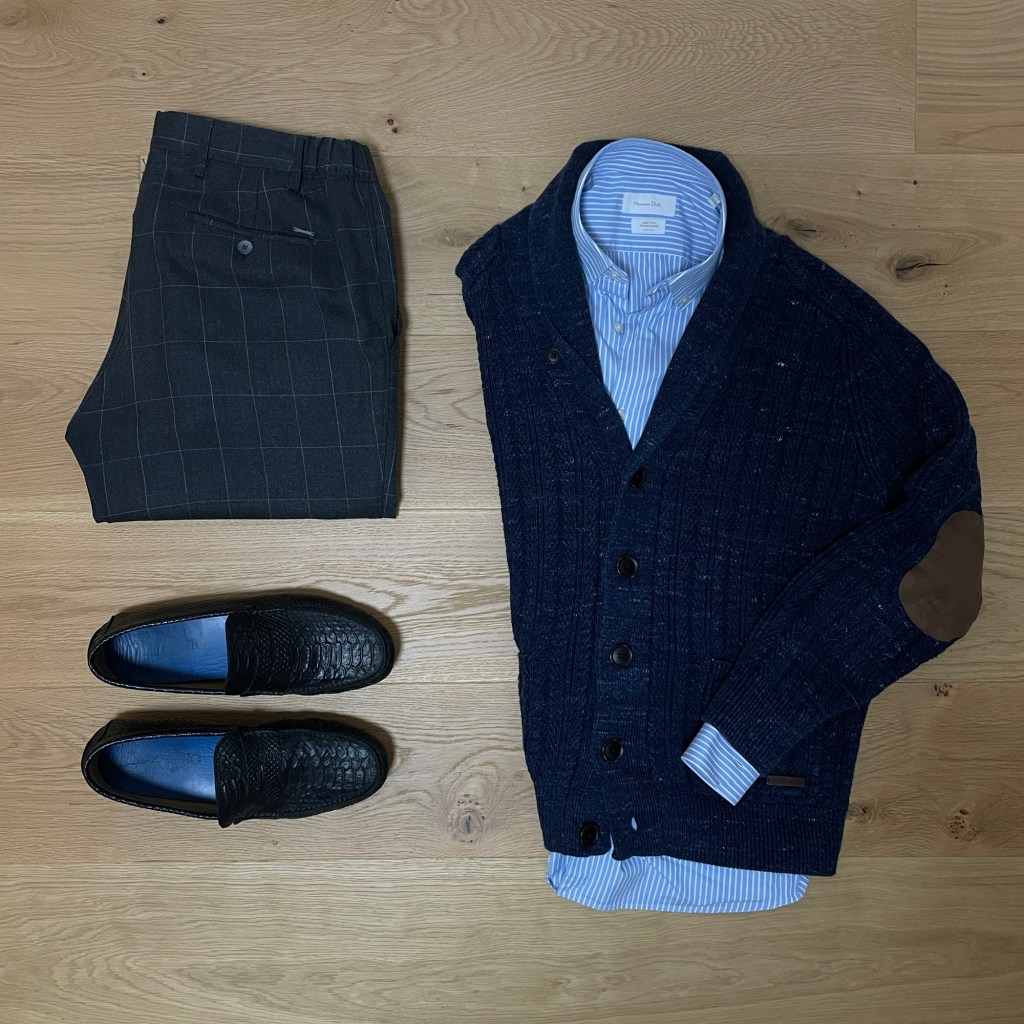 Blue button down from Massimo Dutti with a navy shawl neck cardigan form Pier One Layerd above. The Cardigan was extremely cheap but doesn’t look to shabby and can honing the dryer without losing size or form. The chinos are also from Massimo Dutti, and cost ~20€ in their summer- sale. The rubber around the waist increases comfort a lot. Shoes are from Giorgio 1958, really like most of their designs, would have loved to get those in brown, but you can‘t always win, I guess.