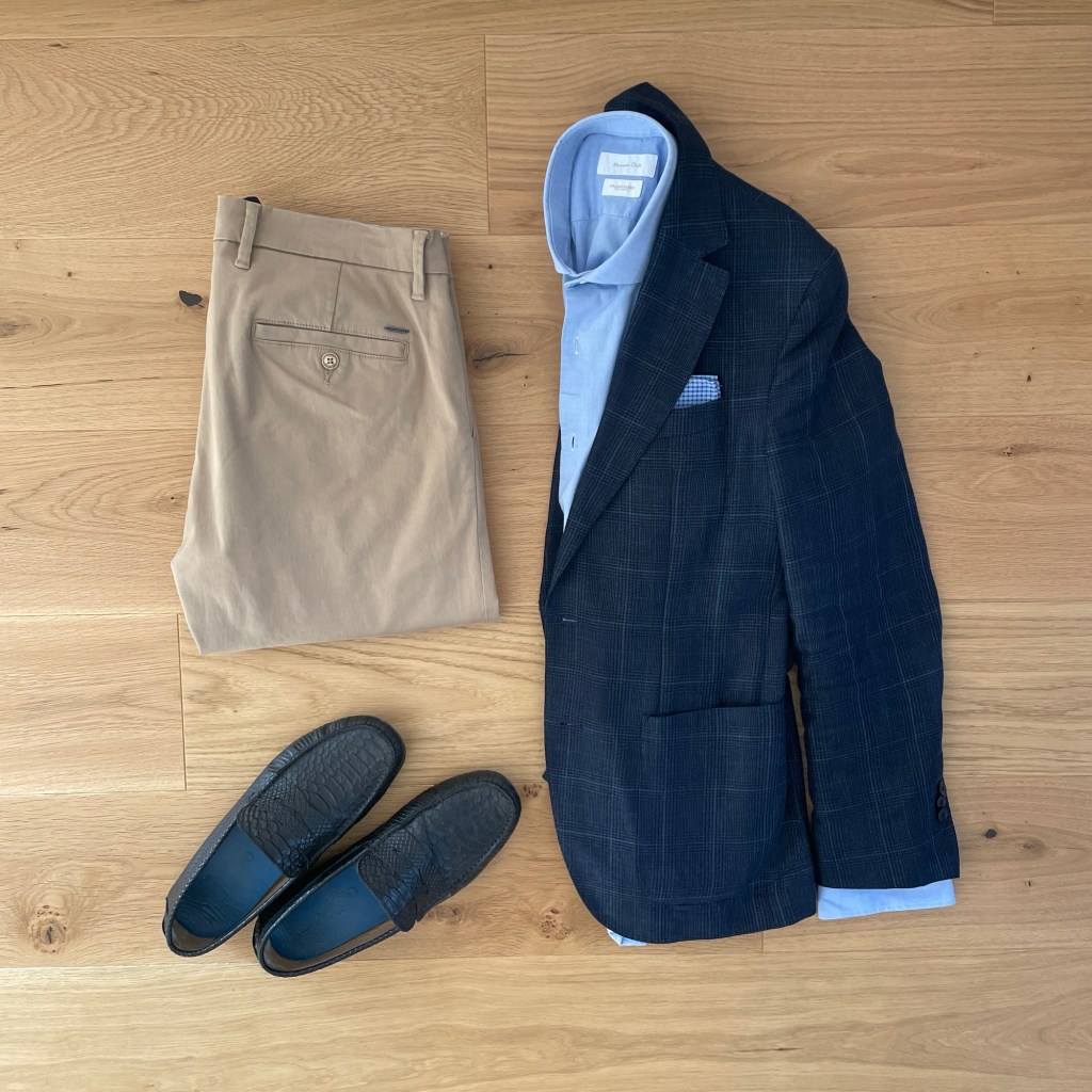 Pretty classic outfit I think, tan chinos with a navy blazer, really love my Giorgio 1958 driving shoes, very comfy, if walking all day.