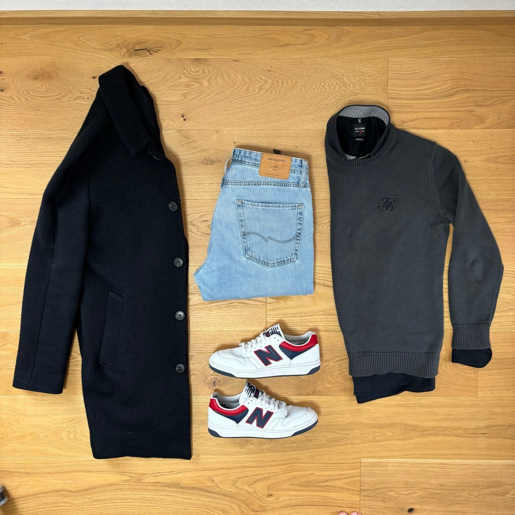Started the day in the office, suited up with sneakers to dress it down a notch. Changed to jeans, crewneck and shirt afterwards. 3 degrees Celsius outside so I fetched my wool coat from the storage, feels to cold for either leather jacket or trenchcoat.